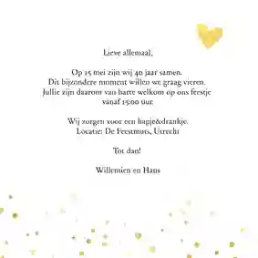 40 jaar liefde, dat vraagt om een feestje! Nodig vrienden, familie en kennissen uit voor jullie 40 jarig huwelijk met persoonlijke, feestelijke uitnodigingen voor 40 jaar getrouwd.