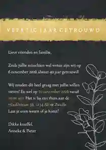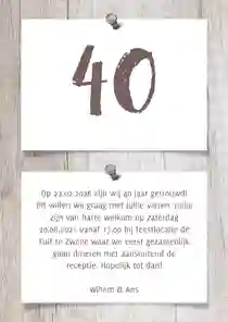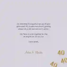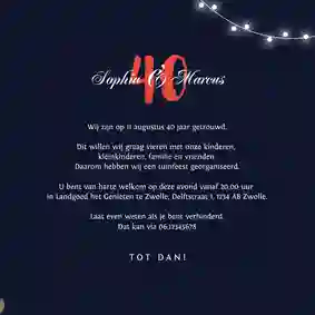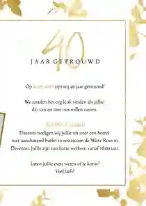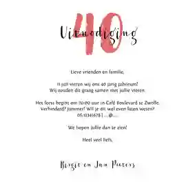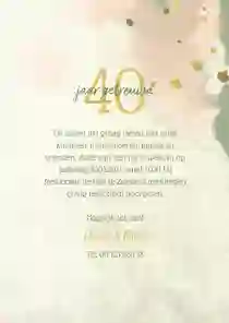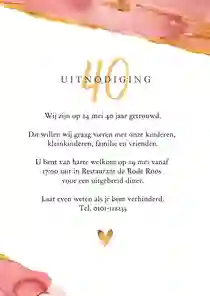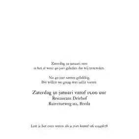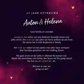 40 jaar liefde, dat vraagt om een feestje! Nodig vrienden, familie en kennissen uit voor jullie 40 jarig huwelijk met persoonlijke, feestelijke uitnodigingen voor 40 jaar getrouwd.