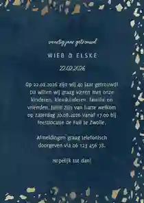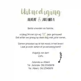 De mooiste jubileumkaarten voor 40 jaar huwelijk maak je eenvoudig en snel. Je kiest de uitnodiging die het beste past bij jullie en de liefde die jullie voor elkaar voelen. En vervolgens kun je in de kaartmaker persoonlijke details toevoegen. Jullie namen bijvoorbeeld, of een lieve foto. Hoe leuk zou het zijn om een van de eerste foto’s van jullie samen op het kaartje te zetten! Je kunt hier natuurlijk heerlijk voor gaan zitten met z’n tweetjes. Maar als je je liever stort op de voorbereidingen van jullie 40 jarig jubileumfeest, dan kan dat ook. Een persoonlijke kaart voor 40 jaar huwelijk is immers zó gemaakt.