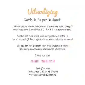 Je bent daarom op [datum] vanaf [tijd] welkom in [locatie].