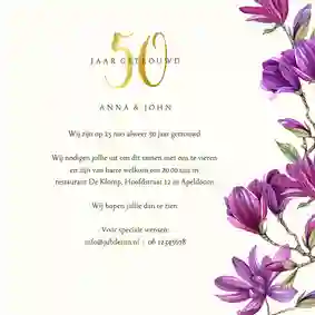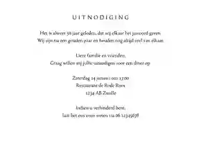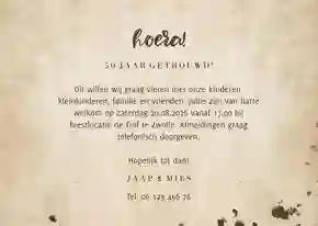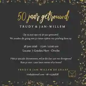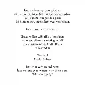 - Wat zet je op een kaart voor 50 jaar getrouwd? Jullie allermooiste foto! Dit maakt de uitnodigingen onwijs dierbaar en persoonlijk.