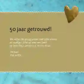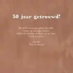 ❤️ Tip: zijn jullie 50 jaar samen, maar nooit getrouwd? Liefde kent geen grenzen en onze jubileumkaarten ook niet. Met een kleine aanpassing zijn de kaarten uitermate geschikt voor een 50 jaar samen viering.