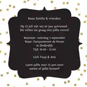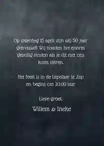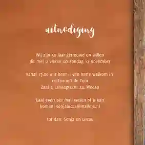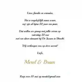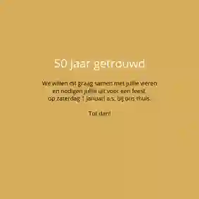 - Wat zet je op een kaart voor 50 jaar getrouwd? Jullie allermooiste foto! Dit maakt de uitnodigingen onwijs dierbaar en persoonlijk.