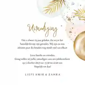 Voor gasten is het ontvangen van de uitnodiging voor jullie huwelijksjubileum een ontzettend leuke verrassing. Ineens ligt er een leuke dag in het verschiet met een groot feest. Maak daarom vandaag nog een jubileumkaart met foliedruk.