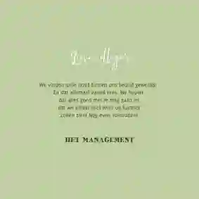 Zie je een kaart die je leuk vindt, maar zou je de kaart graag met een kleine aanpassing willen bestellen? Neem dan gerust contact op via info@kaartje2go.nl, dan kijken we wat er mogelijk i