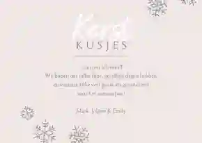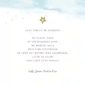 - Een kerstkaart met babyfoto is superschattig, maar het is ook ontzettend leuk om een foto van jullie kersverse gezin te kiezen. Bijvoorbeeld bij de kerstboom of in de (winterse) natuur.