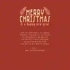 Merry Christmas and a happy new year … happy holidays of toch een kerstkaart met warm wishes? In onze collectie vind je de leukste kerstkaarten met Engelstalige teksten. Perfect voor vrienden, familieleden of kennissen die geen Nederlands spreken. Maak een keuze uit een van de Engelse kerstkaarten pas ‘m naar smaak aan en wens je dierbaren love, peace & joy toe!