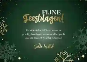 In onze collectie kerstkaarten vind je niet alleen kaartjes met goudfolie, maar ook kerstkaarten met goudlook. Onze designers hebben de kaartjes dan zo ontworpen dat het haast lijkt alsof ze echt goud hebben gebruikt. Dit maakt kerstkaarten met goud ontzettend stijlvol en chic. In de kerstkaarten zie je bijvoorbeeld veel sterren terug. Ook goudkleurige hartjes en sneeuwvlokken sieren veel kerstkaartjes. In de kaartmaker kun je trouwens helemaal los met de goudkoorts. Kies bijvoorbeeld voor goudkleurige fotokaders, gouden letters of figuren met goud. Daarnaast kun je in je tekst aandacht geven aan deze bijzondere kerstige kleur, met een tekst als ‘je bent goud waard’ of 'ik wens je veel lichtpuntjes'. Kortom, het is alles goud wat er blinkt.