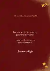 Samen lange strandwandelingen maken. Lekker knuffelen op de bank op een regenachtige dag. Je hond en jij zijn elkaars beste vrienden. En heb je kinderen, dan telt de hond ook helemaal mee als gezinslid! Daarom is het superleuk om een kerstkaart met honden te versturen rond de feestdagen. Kies bijvoorbeeld een kaart met een foto van je trouwe viervoeter. Of ga voor een van onze superschattige kerstkaarten met illustraties van honden. De keuze is reuze!