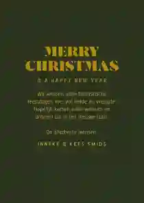 Moderne uitnodiging voor een kerstfeestje in donkergroen met een papieren kerstbal en sterren.