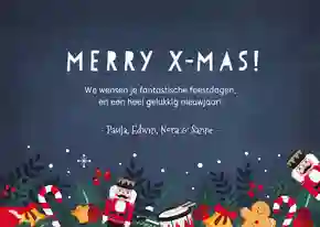 Het allerleukst is natuurlijk wanneer de kiddo’s hun eigen gezichtje op de kerstkaart zien. Kies de mooiste en schattigste foto van het afgelopen jaar en werk deze eventueel af met grappige figuren en leuke details. Geef het kindje een witte baard, een rode neus of zet een kerstmuts of rendiergewei op het hoofd. Een hilarische kinderkerstkaart gegarandeerd!