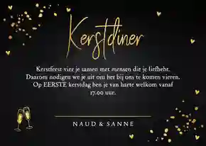 - Voeg feestelijke details toe: denk aan illustraties van kerstbomen, sterretjes, sneeuwvlokken of wijnglazen.