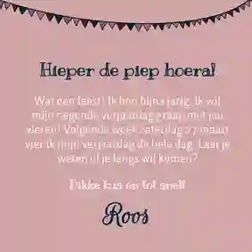 Net als volwassenen zijn ook kinderen maar één keer per jaar jarig. Toch vieren de meeste kinderen het niet één, maar twee keer: op hun verjaardag en tijdens hun kinderfeestje! Gaat ook jouw - niet meer zo kleine - spruit een feestje geven voor vriendjes en vriendinnetjes? Dan biedt dat dubbel de kans om met uitnodigingen rond te gaan. Maar wees niet bang; twee aparte uitnodigingen maken is niet nodig. Bij Kaartje2go kun je namelijk heel makkelijk ontwerpen kopiëren. De uitnodiging voor het verjaardagsfeest of het kinderfeestje is dus zo aangepast.