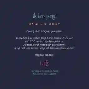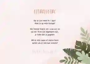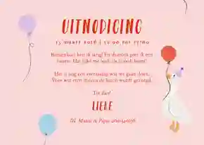 Kaartje2go heeft de allergrootste kaartencollectie van Nederland. De kans is dus groot dat je kinds favoriete dier zich ergens tussen onze uitnodigingen bevindt. Sommige dieren hebben zelfs een eigen thema, waaronder de flamingo en de dieren die leven op een boerderij. Een mooie dieren uitnodiging gevonden, maar staat hier een andere leeftijd op? In de meeste gevallen is dit zó aangepast. Hier zeker van zijn voordat je tussen de uitnodigingen met dieren gaat speuren? Filter dan op ‘leeftijd aanpasbaar’.