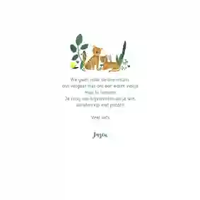 Op safari in de dierentuin, reptielen vasthouden, of toch een high tea houden tussen de alpacas? Bij Kaartje2go vind je uitnodigingen met dieren voor elke activiteit. Je kunt het haast zo gek niet bedenken of onze designers hebben er wel een uitnodiging voor gemaakt. Naast geliefde dieren als paarden, poezen en honden stelen ook wezens als eenhoorns en dino’s de show in onze collectie. Van plan om het dierenfeestje een tropisch tintje te geven? Neus dan ook tussen onze jungle uitnodigingen met flamingo’s, toekans en papegaaien!
