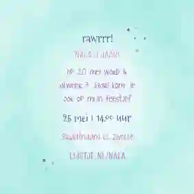 Tip: Bedenk een rawr-some tekst of laat je inspireren door deze teksten voor kinderfeestjes uitnodigingen.