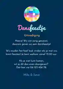 Een uitnodiging voor een disco kinderfeestje is zo gemaakt bij Kaartje2go: