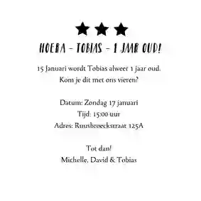 Het wordt een speciale dag want je zoontje of dochtertje krijgt een taart met één kaarsje erop. Iedereen kijkt ernaar uit. Het is niet alleen voor jou als mama of papa, maar ook voor de hele familie, een bijzondere gebeurtenis. Er worden voor het eerst verjaardagsgeschenken uitgedeeld en er komt een lekkere verjaardagstaart met een kaarsje, die je peuter waarschijnlijk met veel geklieder naar binnen zal spelen. Als je wilt dat iedereen erbij is op deze speciale verjaardag, dan kan je je vrienden en familie uitnodigen met een verjaardagskaart om deze eerste verjaardag van je kindje mee te komen vieren.