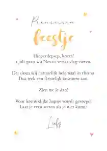 Nu je hier toch naar uitnodigingen aan het kijken bent, kan je misschien ook ineens al kijken naar uitnodigingen voor andere soorten van feestjes. Of wil je uitnodigingen voor een tienerfeest of een lentefeest? Kijk dan bij onze uitnodigingen voor kinderfeestjes vanaf 12 jaar.