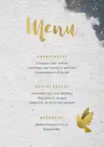 Heb je de gerechten bepaald en de menukaarten uitgezocht, dan is het tijd om ze te bestellen. Je kunt de menukaart natuurlijk pas geven als je gasten al aan tafel zitten, maar je kunt er ook voor kiezen het menu al mee te sturen met je uitnodigingen. We lichten de twee opties hieronder voor je uit.