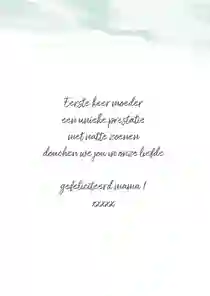 Je eerste Moederdag ga je voor altijd onthouden. Want hoe bijzonder is het dat je mag zorgen voor een minimensje, en dat kan vieren op een dag speciaal voor mama’s. Of het kindje nog in de buik zit of al geboren is, maakt niet uit. Met een eerste Moederdag kaart voor de mama zet je haar even flink in het zonnetje. Een lieve, persoonlijke boodschap of een schattig kiekje van de kleine spruit maken het feest compleet.