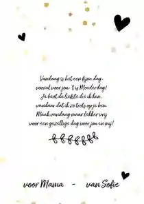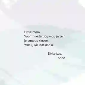 Ook op een waardebon wil je een mooie tekst schrijven om je moeder te laten weten hoeveel ze voor jou betekent. Kijk voor inspiratie bij onze Moederdag teksten.