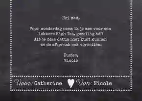 Maak zelf een tegoedbon voor Moederdag, bijvoorbeeld voor een zelfgemaakte maaltijd, een etentje, high-tea of avondje uit. Of stuur bij je kaart een cadeaubon toe, zodat je moeder zelf een leuk cadeau uit kan kiezen.