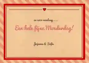 Een tegoedbon is hartstikke leuk om te geven voor Moederdag. Kies een kaart uit de collectie tegoedbonnen voor Moederdag of maak je eigen waardebon helemaal zelf. Bestel je voor 21:00 uur de kaart, dan doen wij jouw kaart diezelfde dag nog op de bus!