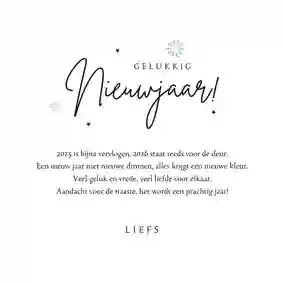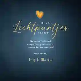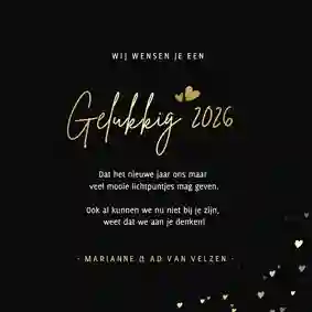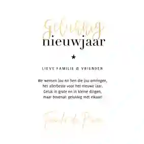 Onze kant-en-klare nieuwjaarskaarten zijn met liefde gemaakt en dat stralen ze ook uit. Is er sprake van liefde op het eerste gezicht? Duik dan in onze kaartmaker en pas de kaart naar wens aan. Schrijf bijvoorbeeld een liefdevolle nieuwjaarswens aan de binnenkant. Er gaat immers niks boven een liefdevolle nieuwjaarswens die uit je hart komt. Ook is er vaak nog wel ruimte voor een foto. Voeg dus gerust een kiekje van de persoon die jij liefhebt toe.