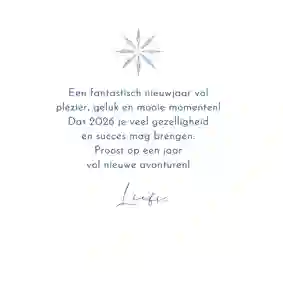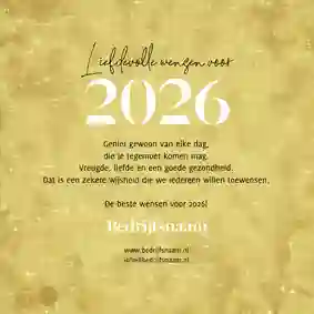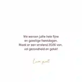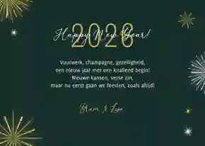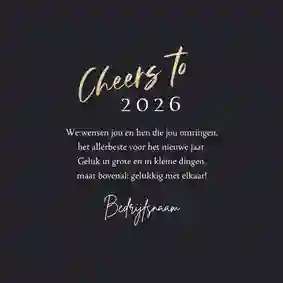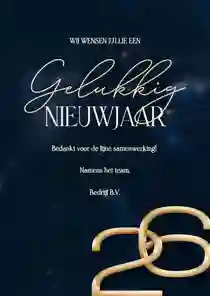 Onze zakelijke nieuwjaarskaarten hebben een professionele uitstraling, bieden ruimte voor je bedrijfslogo en zijn direct klaar om naar partners, relaties of medewerkers te versturen. In deze collectie vind je stijlvolle ontwerpen met 2026 in de hoofdrol: van donkerblauw, donkergroen en zwart met goud- of zilveraccenten tot lichte, neutrale kaarten. Alle ontwerpen zijn eenvoudig aan te passen, zodat je snel een nieuwjaarskaart vindt die past bij je bedrijf. Ga bijvoorbeeld voor een nieuwjaarskaart met jullie eigen bedrijfslogo.