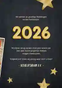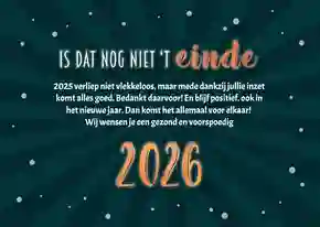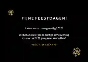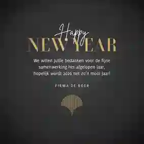 Onze zakelijke nieuwjaarskaarten hebben een professionele uitstraling, bieden ruimte voor je bedrijfslogo en zijn direct klaar om naar partners, relaties of medewerkers te versturen. In deze collectie vind je stijlvolle ontwerpen met 2026 in de hoofdrol: van donkerblauw, donkergroen en zwart met goud- of zilveraccenten tot lichte, neutrale kaarten. Alle ontwerpen zijn eenvoudig aan te passen, zodat je snel een nieuwjaarskaart vindt die past bij je bedrijf. Ga bijvoorbeeld voor een nieuwjaarskaart met jullie eigen bedrijfslogo.