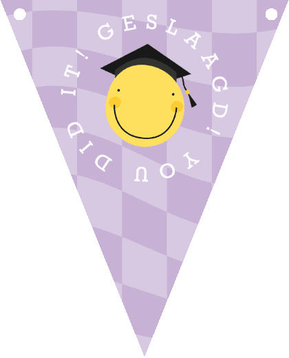 Hippe en vrolijke geslaagd slinger met smiley en foto. De lila en gele achtergrondkleur is aanpasbaar.