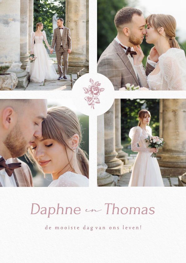 Huwelijksposter fotocollage klassieke roos