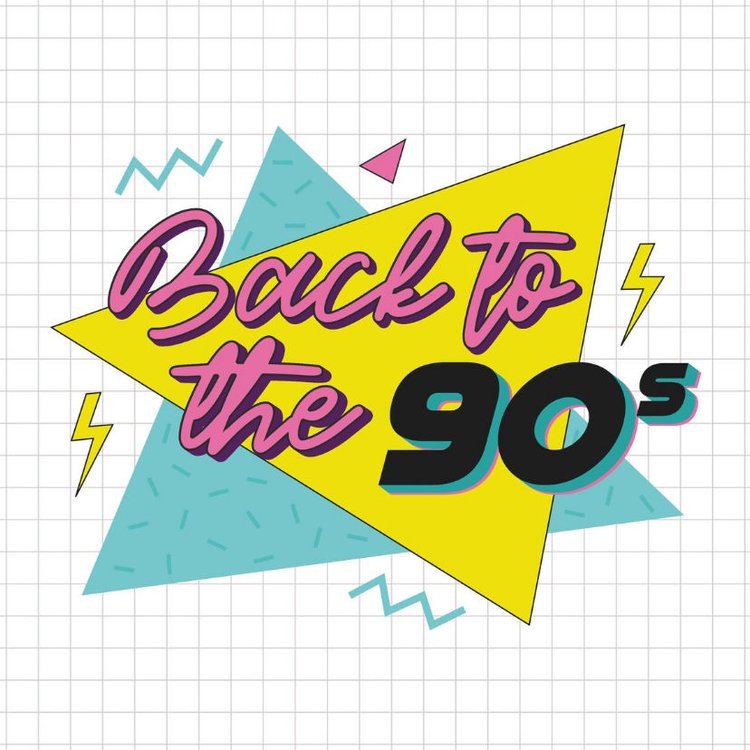 Vrolijke poster voor bijvoorbeeld een 90s themafeestje! Met felle kleuren en symbolen.