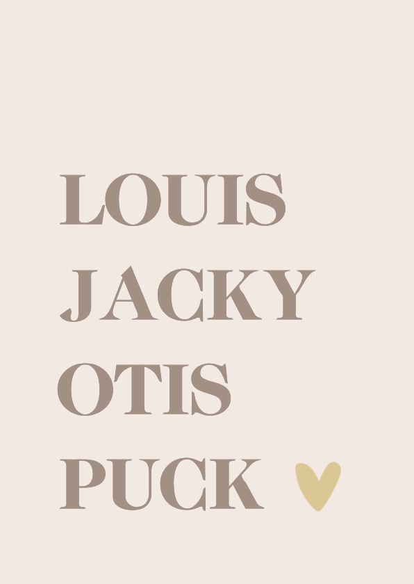 Hippe staande poster met de namen van jullie gezin er op. Kleuren en tekst zijn aanpasbaar.