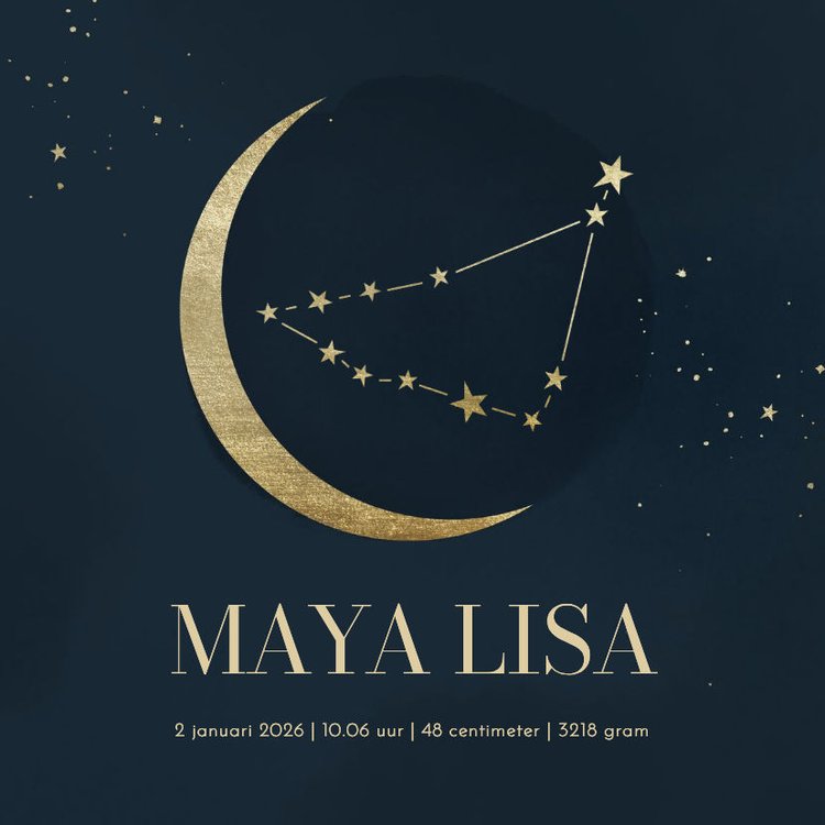 Stijlvolle poster voor een baby, met het sterrenbeeld Steenbok op een blauwe achtergrond, met maan.