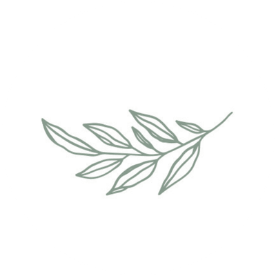 Witte sluitzegel met een groen handgetekend takje met blaadjes