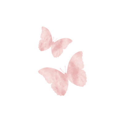 Witte sluitzegel met een roze waterverf illustratie van 2 vlinders.