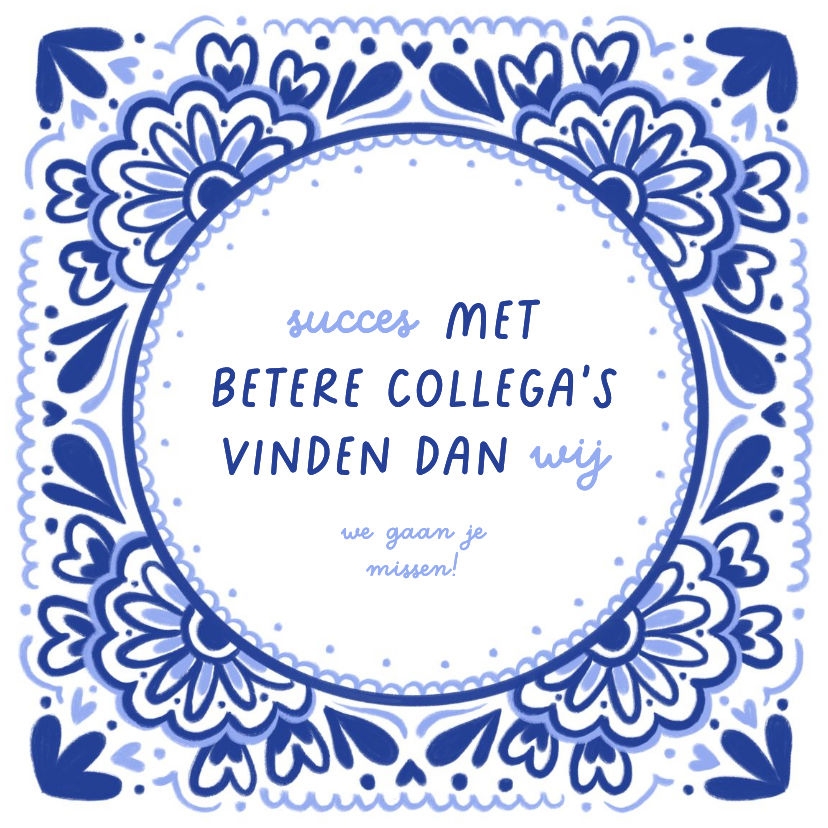 Grappig hollands tegeltje voor een collega met een delfts blauw kader