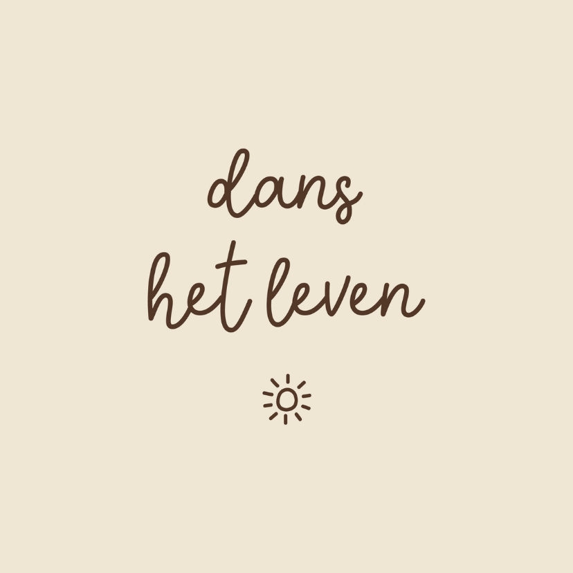 Stijlvol tegeltje voor in huis met de tekst 'dans het leven', in het beige, met een zonnetje.
