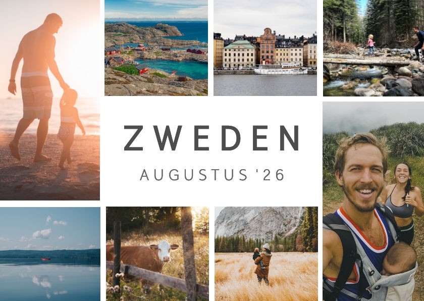 Collage van eigen foto's op een tegeltje, ter herinnering aan jullie vakantie.