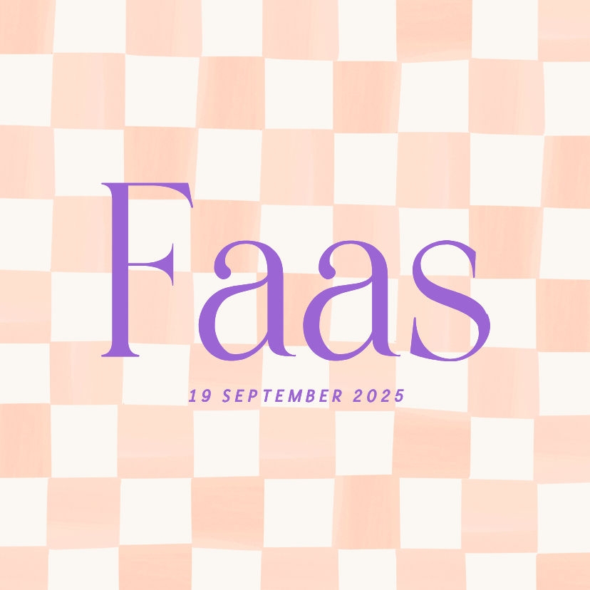 Een modern tegeltje voor de geboorte van een meisje. Met geblokt patroon in oranje en paarse tekst.