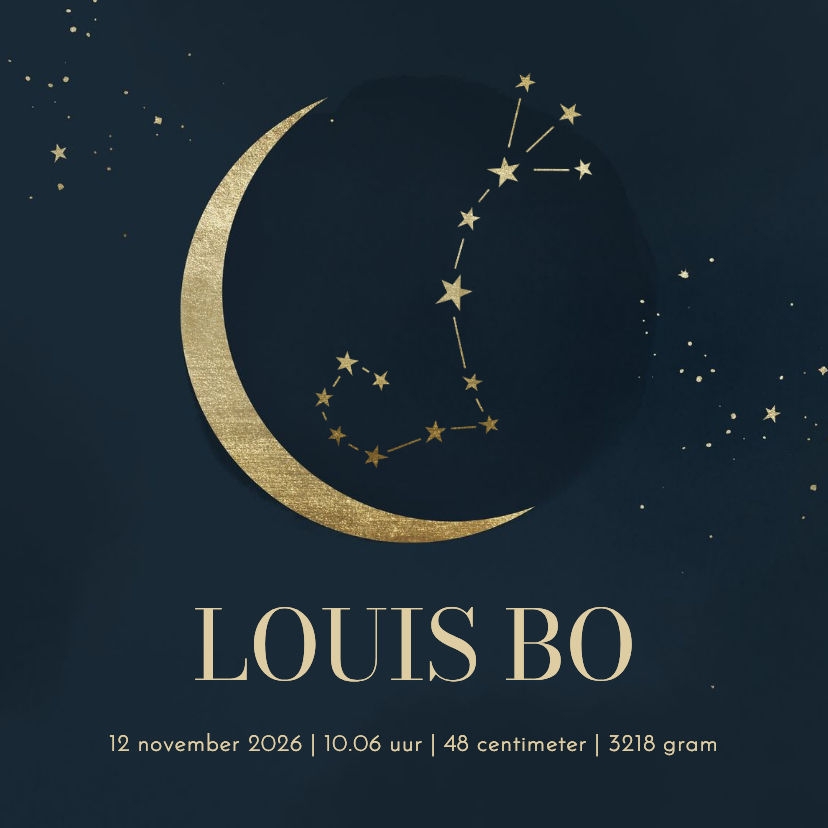 Tegeltje geboorte met sterrenbeeld schorpioen, in het donkerblauw met een goudlook maan en sterretjes.