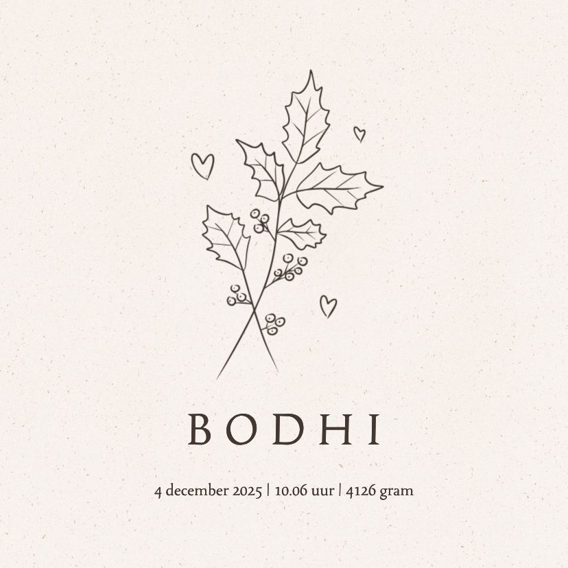 Lief geboortetegeltje met de geboortebloem van de baby, hulst voor december.