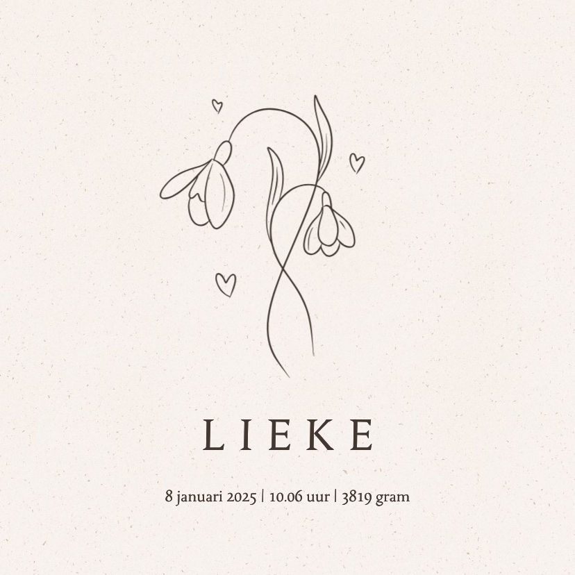 Lief geboortetegeltje met de geboortebloem van de baby, sneeuwklokjes voor januari.