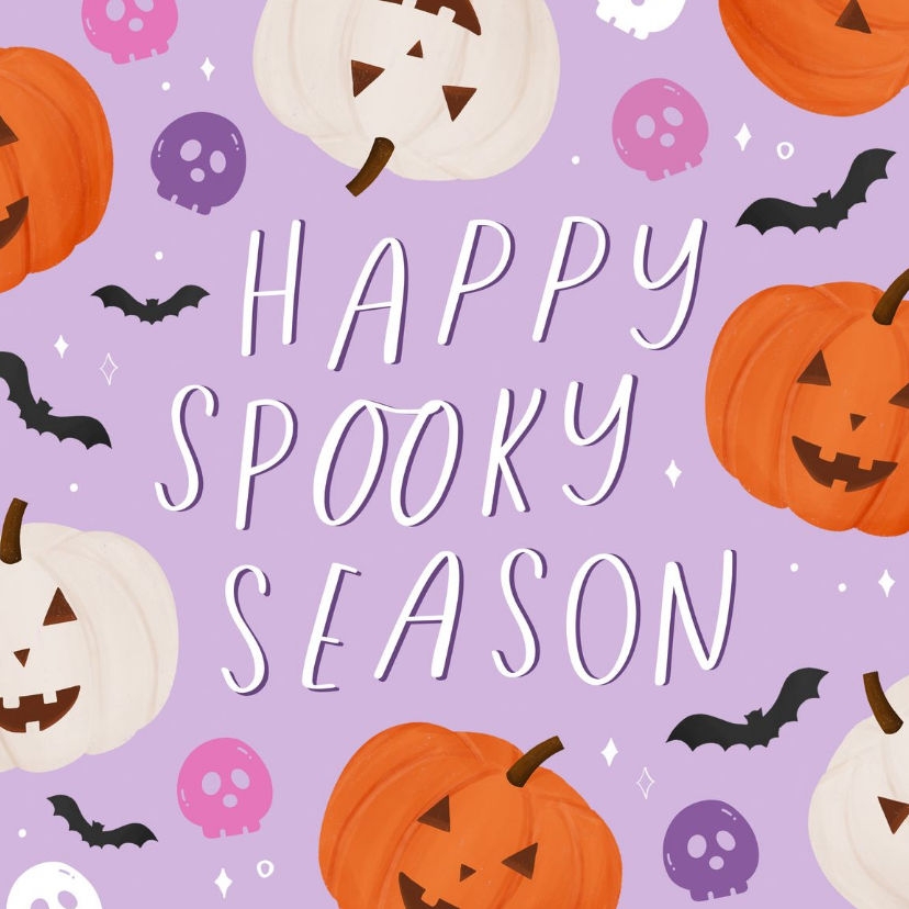 Vrolijk tegeltje voor de Halloween-/herfstperiode. Met pompoentjes met gezichtjes, vleermuizen en schedels.