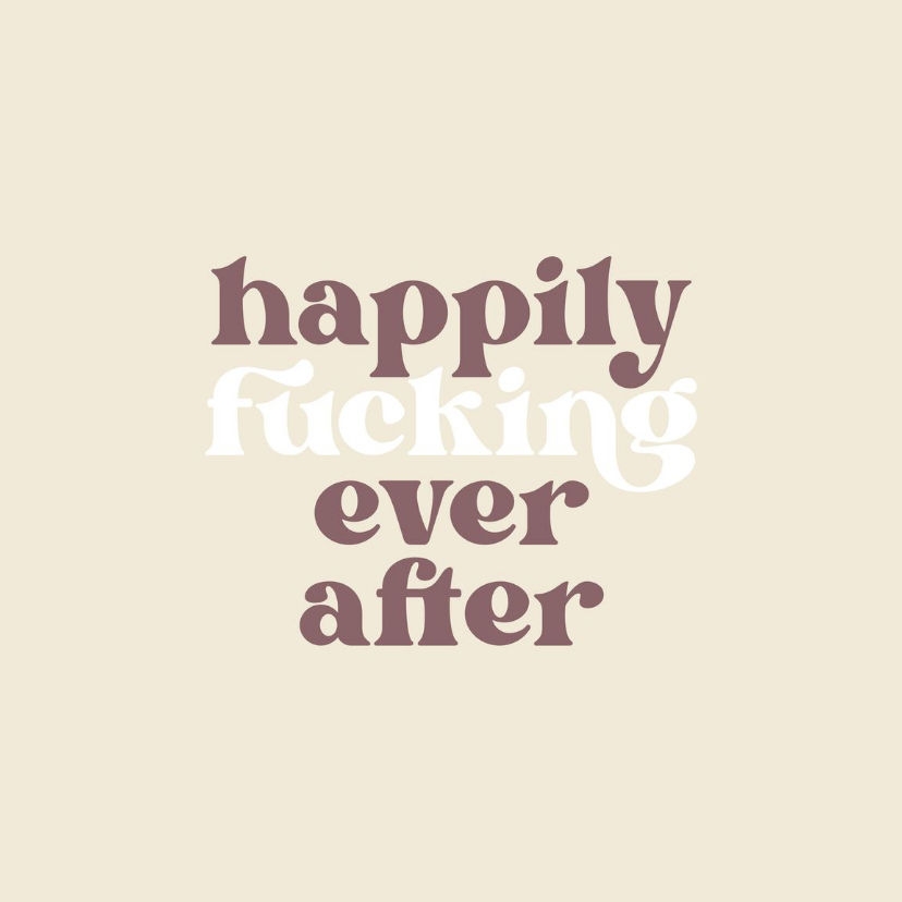 Grappig kleurrijk tegeltje met de tekst 'happily fucking ever after'.