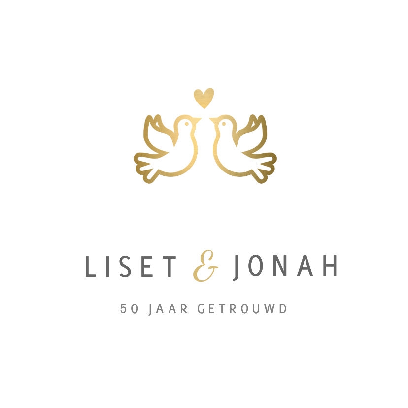 Wit modern jubileum tegeltje met een strakke illustratie van 2 duifjes, namen & trouwdatum.
