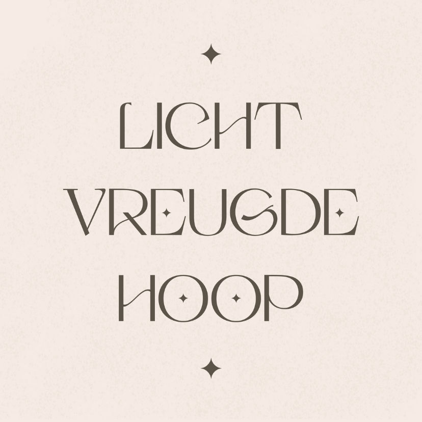 Beige tegeltje voor kerstmis met de christelijke tekst licht, vrede en hoop.