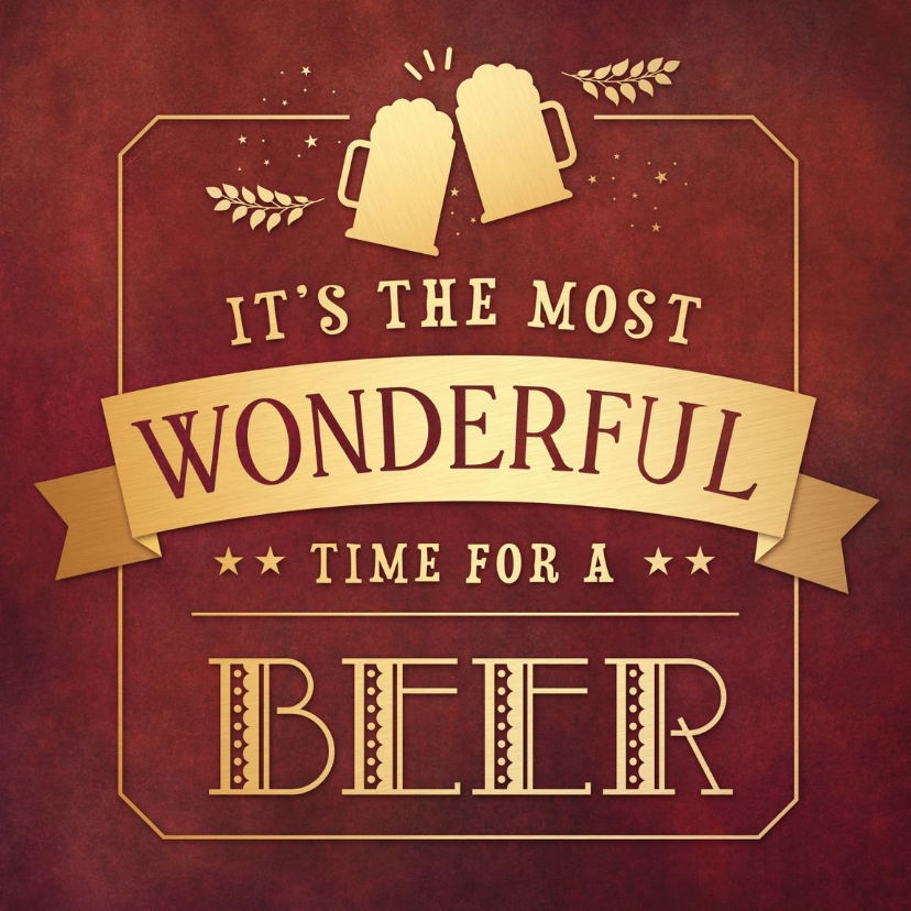 Grappig vierkante tegel met de persiflage tekst: it's the most wonderful time for a beer.